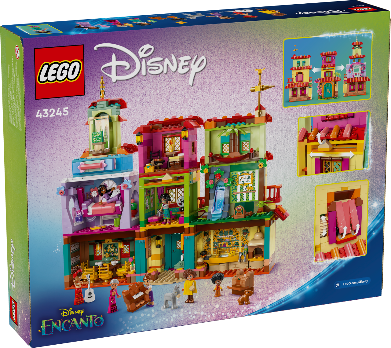 Das magische Haus der Madrigals (43245) ist ein Bauspielzeug, das Fans und Kinder ab 7 Jahren unzählige Abenteuer aus dem Film Encanto darstellen lässt. Dieses LEGO® ǀ Disney Bau- und Spielset ist eine tolle Geschenkidee. Das Haus der Familie Madrigal besteht aus 9 Segmenten, damit die ganze Familie miteinander bauen kann. Bewegliche Dachschindeln, klappernde Fensterläden, eine Bettschaukel und eine kleine Schublade sind nur einige Funktionen.
