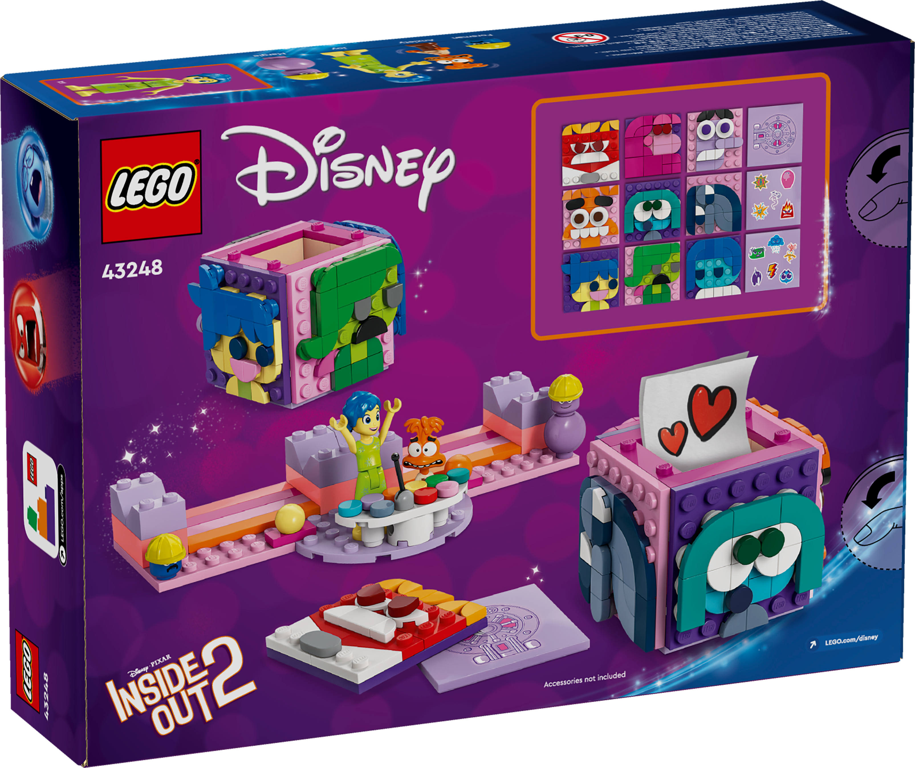 LEGO ǀ Disney Alles steht Kopf 2 Stimmungswürfel von Pixar (43248) ist ein Fantasy-Spielzeug zum Bauen, Spielen und Ausstellen für Kinder und Fans von Alles steht Kopf 2 ab 9 Jahren. Das Set beinhaltet 2 baubare Stimmungswürfel mit Platz für kleine Schätze, 9 Stimmungsplatten, einen Ständer für beide Würfel, die beiden LEGO ǀ Disney Spielfiguren Freude und Zweifel von Pixar mit Erinnerungskugeln in entsprechenden Farben sowie die LEGO ǀ Disney Erinnerungsarbeiter Foreman und Margie mit Schutzhelmen.