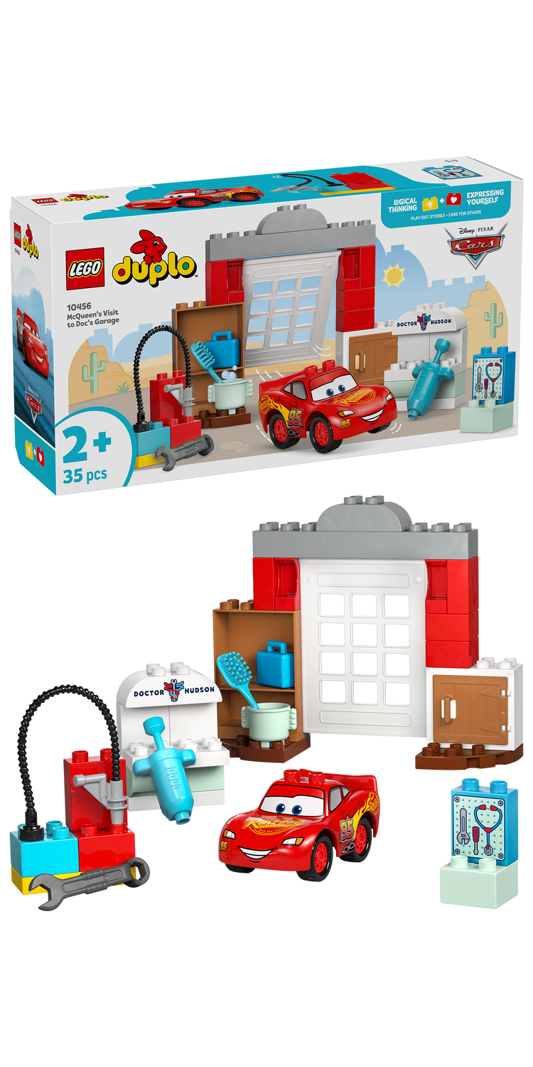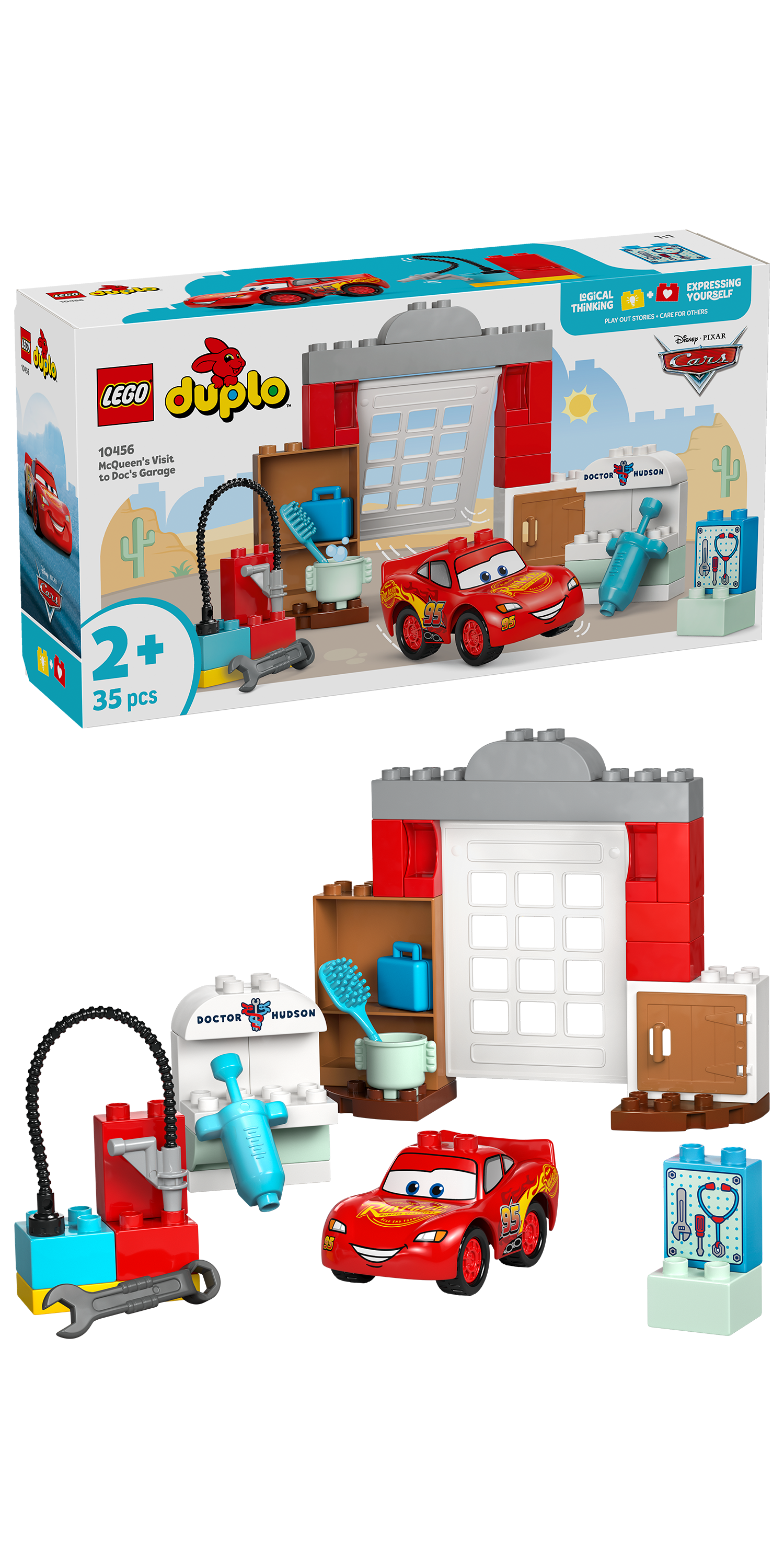 LEGO DUPLO │ Disney and Pixar Cars – McQueens Besuch in Docs Werkstatt (10456) ist ein kreatives Spielzeug, das Kleinkinder ab 2 Jahren in die Welt von Lightning McQueen entführt. Das Cars-Spielset basiert auf der beliebten Filmreihe Cars von Disney und Pixar und lässt Kinder bauen und spielen.