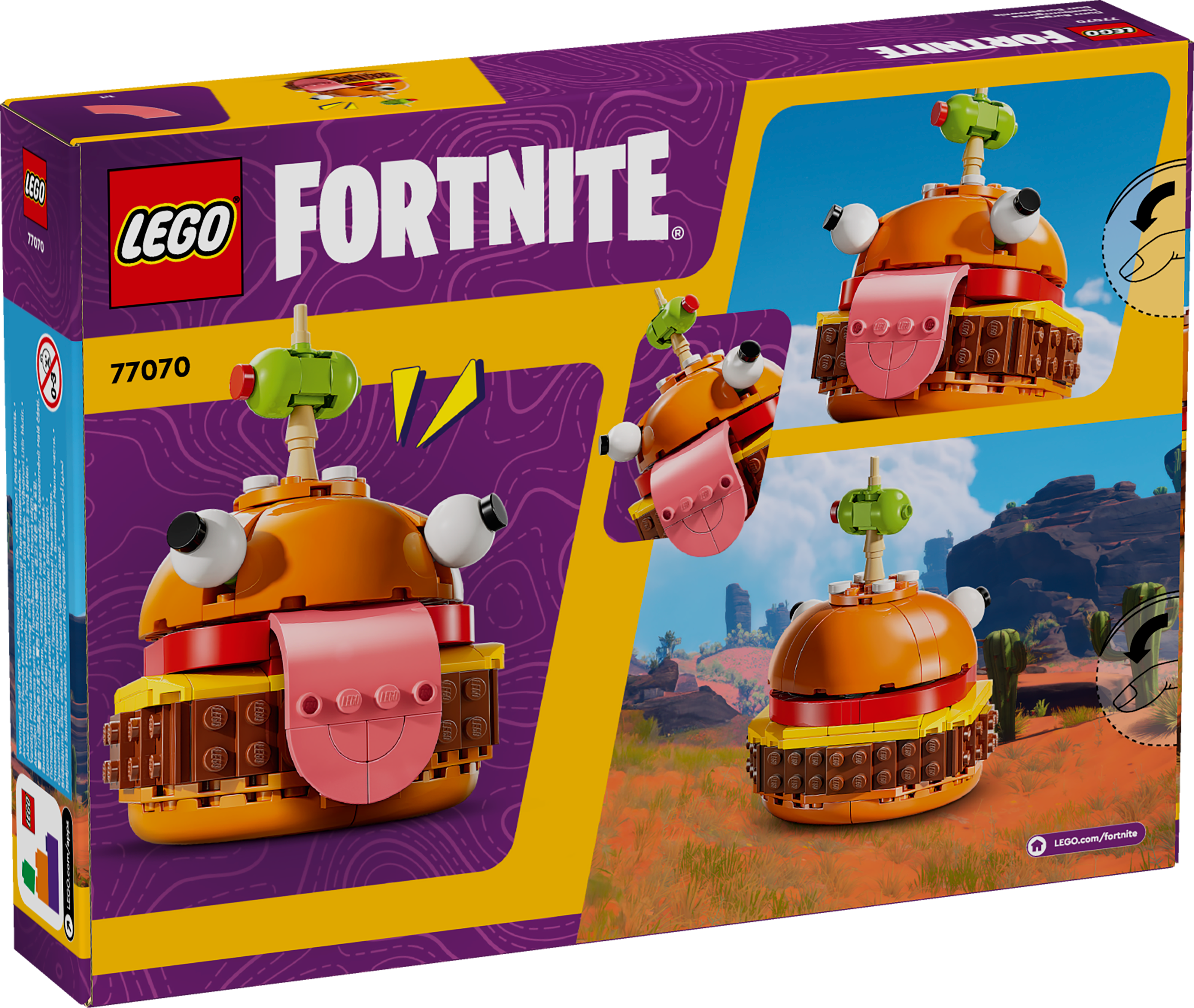 Das Abenteuer Set basiert auf dem Videospiel LEGO Fortnite und lässt Fans ein Modell des legendären Restaurantmaskottchens aus dem Fortnite Universum erschaffen und ausstellen. Junge Gamer werden große Freude daran haben, das Bauspielzeug detailgetreu mit den unverwechselbaren Augen, der Zunge und der auf einen Zahnstocher gespießten Olive nachzubilden.