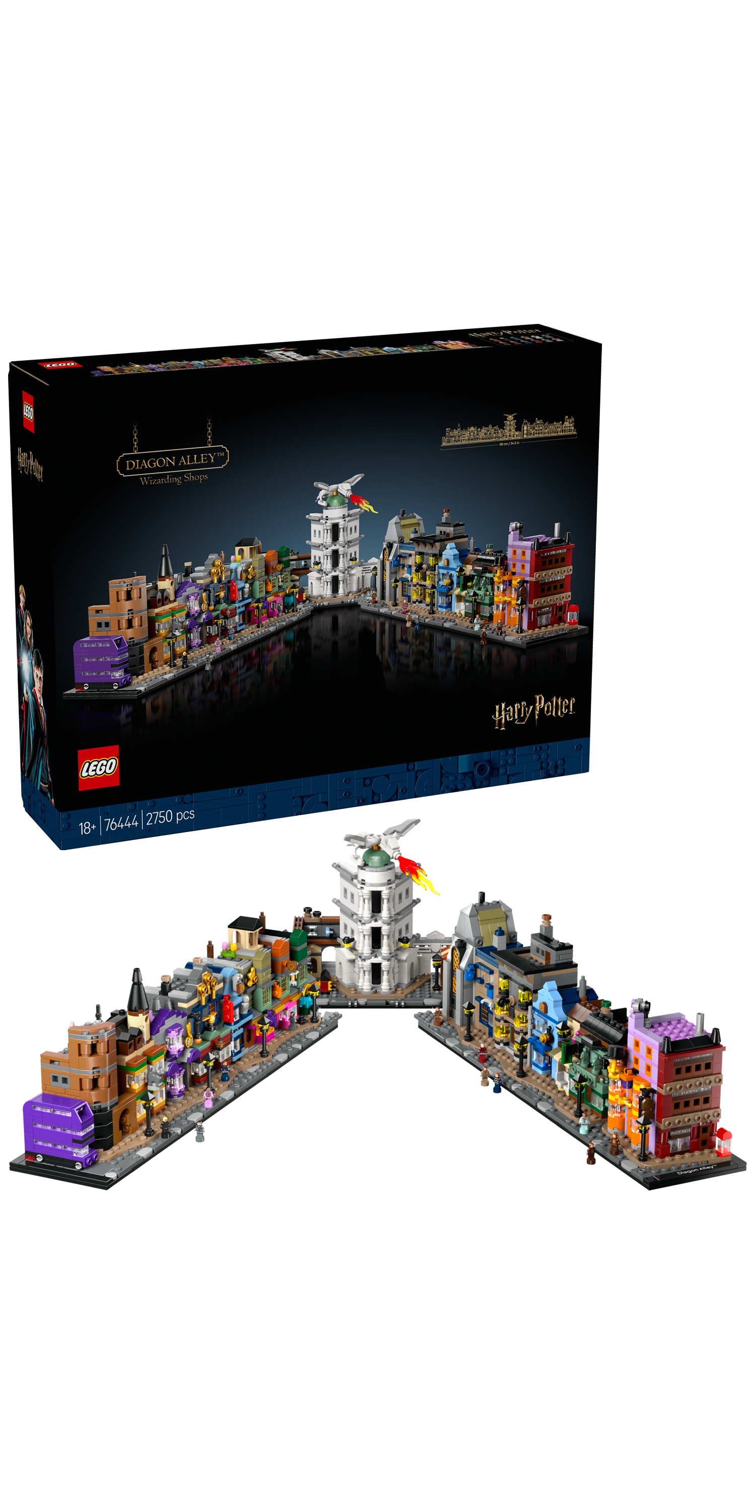 Dieses magische Bauset für Erwachsene ist ein imposanter Hingucker und macht sich super in deinem Zuhause oder im Büro. Du kannst die Winkelgasse entweder mit beiden Straßenseiten oder als eine einzige lange Häuserzeile ausstellen. Oder du zerteilst die Gasse in 5 Segmente, um die Läden näher zu betrachten. Die 12 einzigartigen und seltenen LEGO Harry Potter Mikrofiguren und der Fahrende Ritter runden das Sammlerstück und faszinierende Set ab.