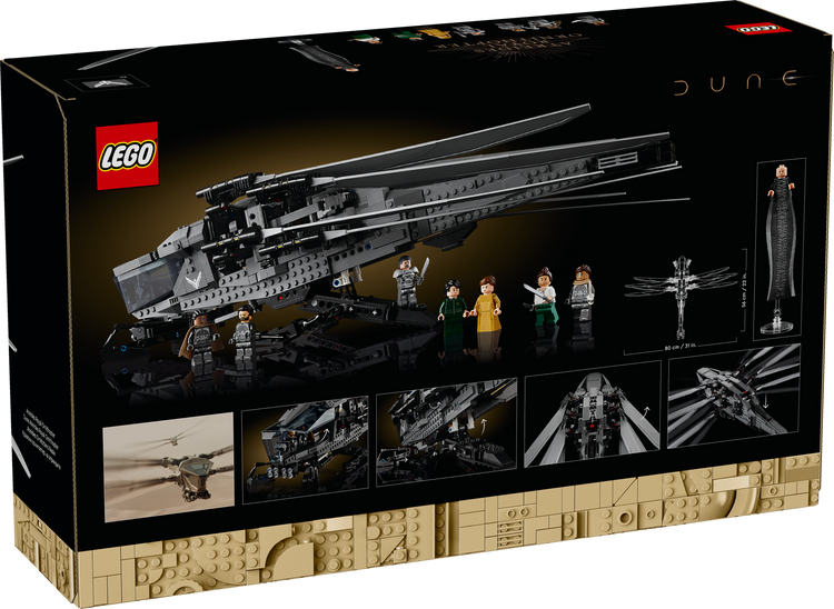 Diese besonders hochwertige Modellflugzeug verfügt über ausklappbare „schlagende“ Flügel, ein ausfahrbares Fahrwerk und ein aufklappbares Cockpit. Darüber hinaus beinhaltet das Bauset 8 legendäre Dune-Charaktere aus dem Film: Paul Atreides, Lady Jessica, Gurney Halleck, Chani, Leto Atreides, Liet Kynes, Duncan Idaho und Baron Harkonnen in seinem langen Mantel. In der LEGO Builder App findest du eine digitale Version der Bauanleitung, die diesem LEGO Flugzeug in Print beiliegt.