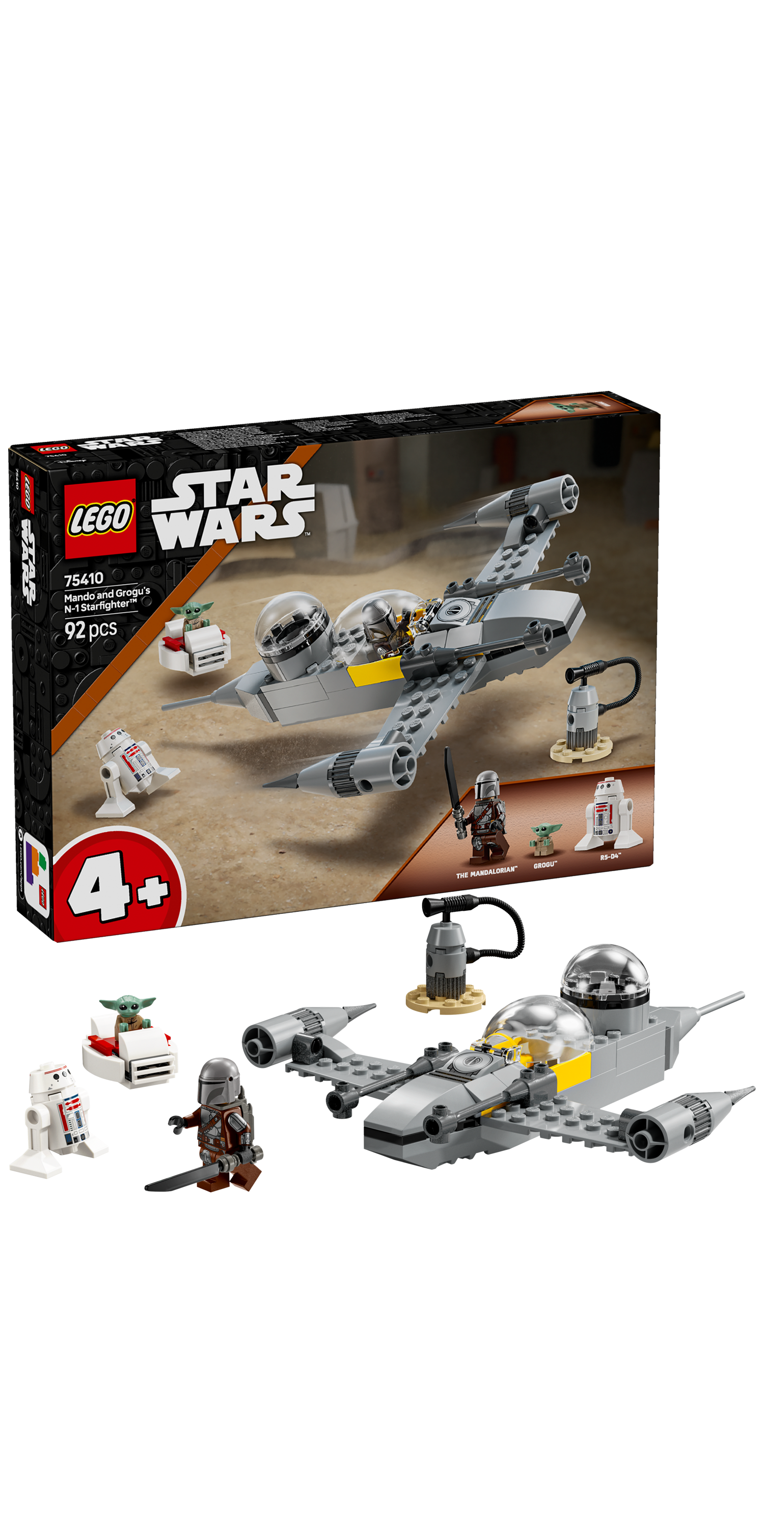 Mandos und Grogus N-1 Starfighter (75410) ist ein faszinierendes Bau- und Spielset, das Vorschulkindern beibringt, wie man mit LEGO Steinen Modelle baut und Fantasy-Abenteuer aus der 3. Staffel von Star Wars: The Mandalorian darstellt. Der N-1 Starfighter ist ein tolles Star Wars Geschenk für Jungen, Mädchen und Fans ab 4 Jahren. Ein Starter-Bauelement lässt Kinder ganz einfach das Bauen beginnen und fantasievoll spielen. Und eine baubare Zapfsäule ist ebenfalls in diesem Star Wars Bauspielzeug mit dabei. Dieses Bauset ist sehr einfach zu bauen und eine tolle Einführung für Vorschulkinder, um sich später an komplexere Sets heranzutrauen.