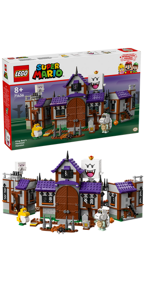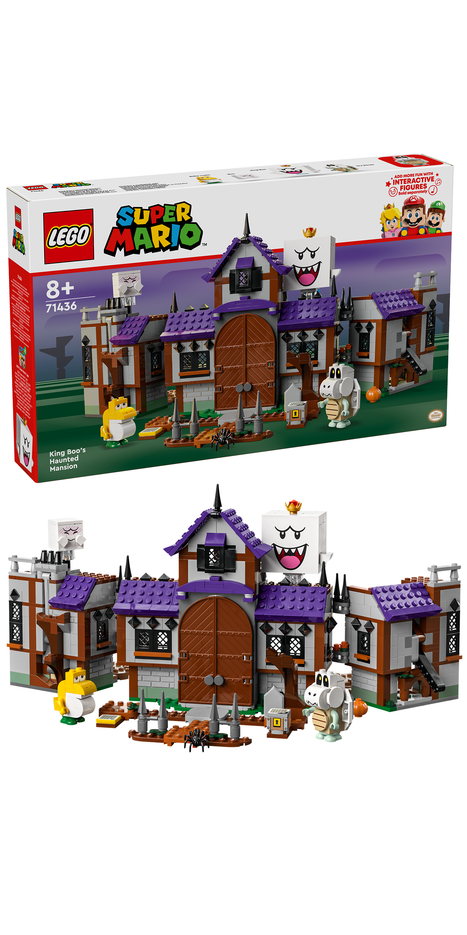 Triff gruselige Figuren und suche nach dem Schlüssel zur Schatztruhe vor König Buu Huus Spukhaus (71436). Dieses LEGO Super Mario Abenteuer-Spielset für Kinder ist eine fantastische Geschenkidee für Jungen, Mädchen und Gamer ab 8 Jahren. Das Bauset beinhaltet ein baubares Spielzeug-Spukhaus, das sich öffnen lässt, um besser mit der Einrichtung spielen zu können, zum Beispiel mit dem hochfahrbaren Sofa und dem Bücherregal mit einer Funktion zum Freilegen des Schlüssels. Auch 4 LEGO Super Mario Minifiguren – König Buu Huu, ein gelber Baby Yoshi, Knochentrocken und ein Buu Huu – laden zum Spielen ein.