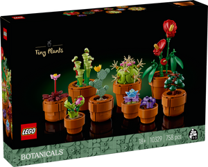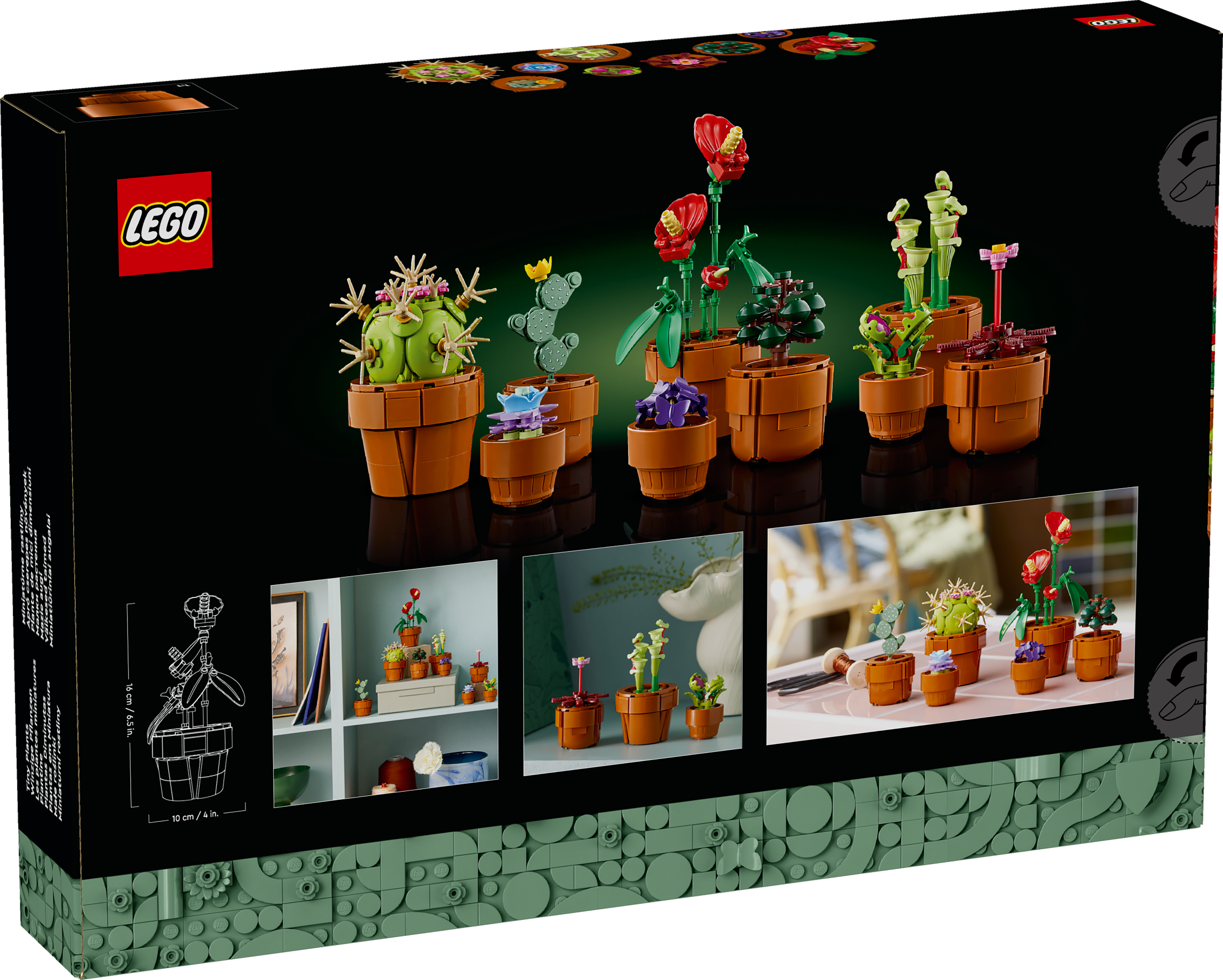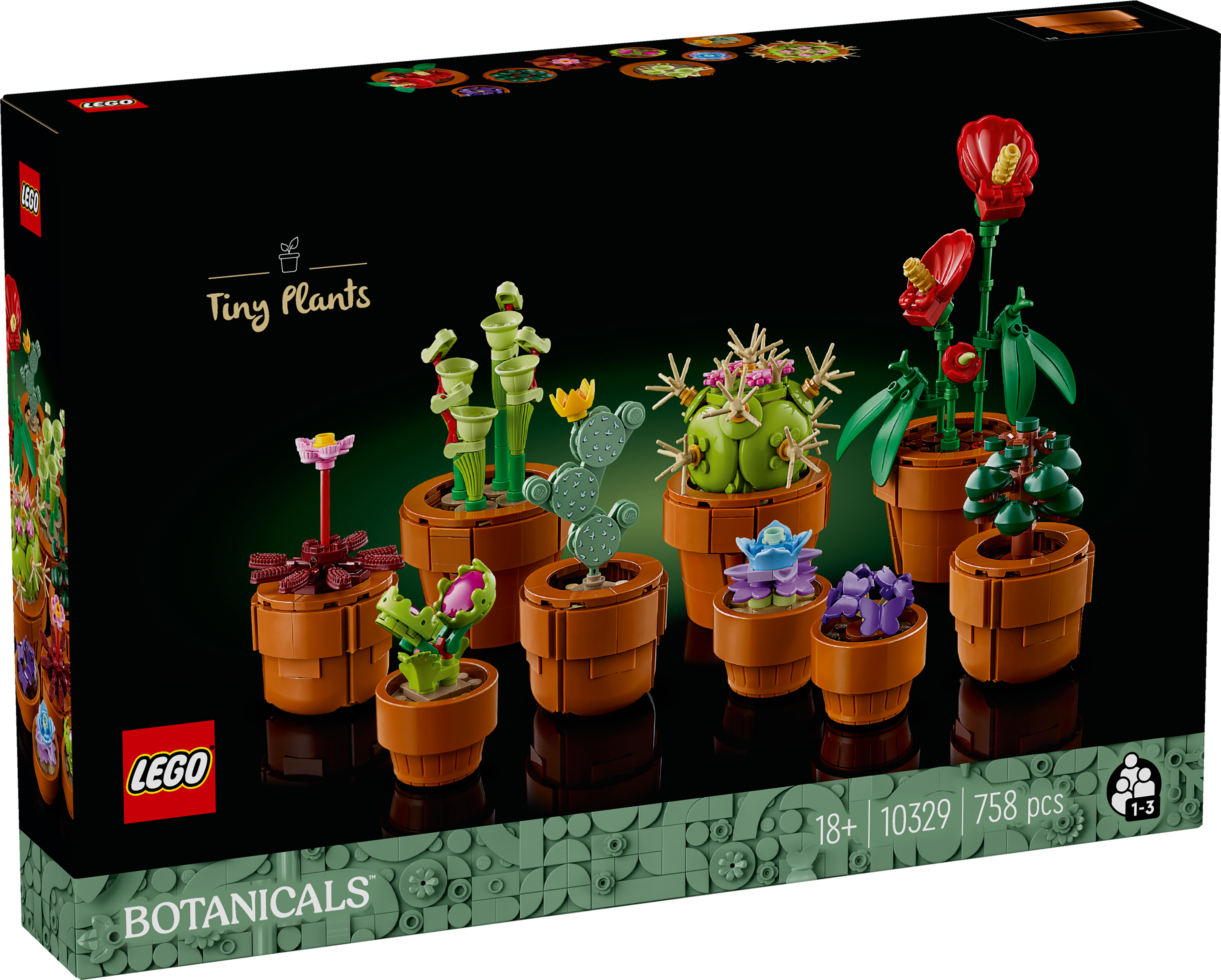 Das LEGO Botanicals Mini Pflanzen (10329) Set für Erwachsene lässt dich einen eleganten und besonders pflegeleichten Blumenschmuck erschaffen. Diese künstlichen Pflanzen sind ein tolles Bauprojekt, das als Zimmer-Deko daheim oder im Büro super aussieht. Baue die 9 fleischfressenden, tropischen und in der Wüste heimischen Pflanzen in ihren baubaren terrakottafarbenen Blumentöpfen.