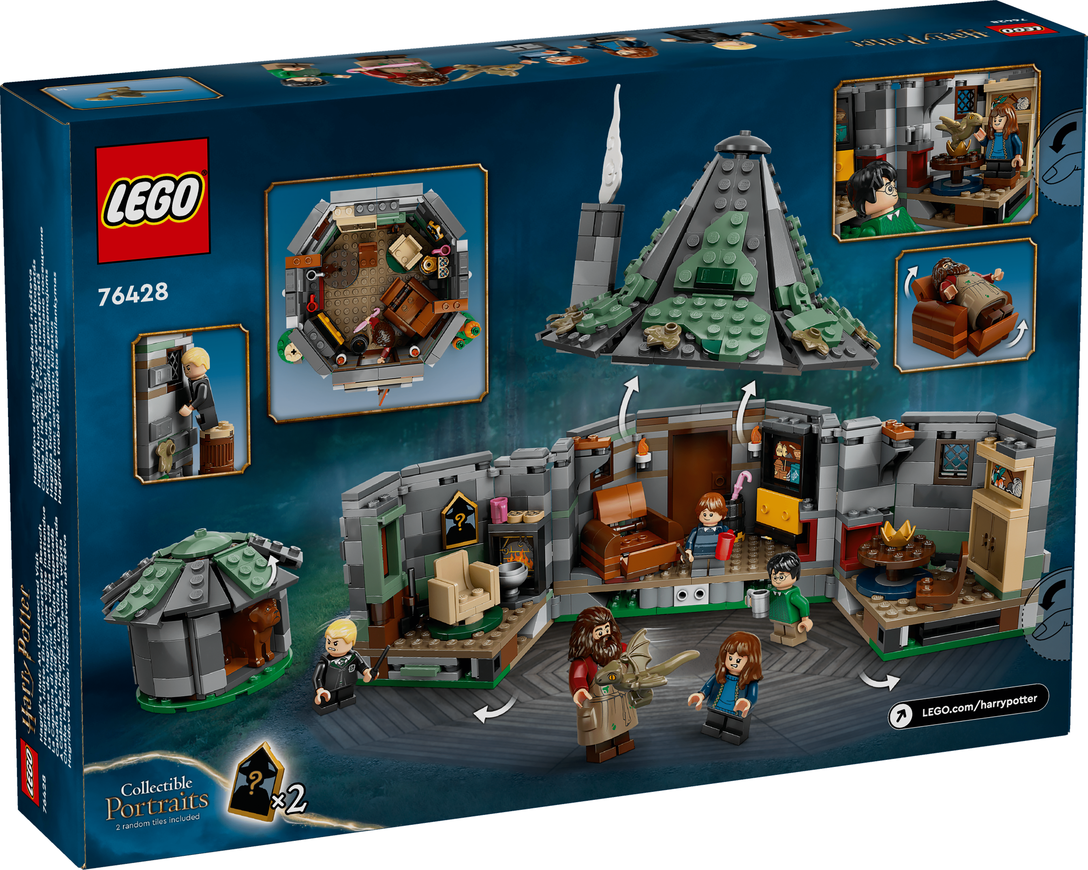 In der Hütte findest du unter anderem einen Klappsessel, auf dem Hagrid sitzen kann, ein Drachenei sowie 2 von 14 möglichen Hogwarts Porträts zum Sammeln. Draußen bietet die baubare Hundehütte für Hagrids Hund Fang zusätzliche kreative Spielmöglichkeiten. Dieses Abenteuer-Spielzeug stellt einen legendären Ort aus den Harry Potter Filmen dar und beinhaltet 5 Harry Potter Charaktere als Minifiguren: Harry Potter, Hermine Granger, Ron Weasley, Draco Malfoy und Rubeus Hagrid sowie die Tierfiguren Norbert and Fang.